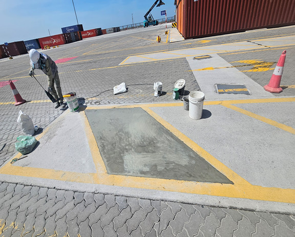 Ứng dụng công nghệ vữa MQT400 để giải quyết các bài toán Phục hồi mặt nền cảng xe chạy mài mòn trơ đá bằng công nghệ đổ bê tông Mác 800 - MQT400 của QuocThang Group.