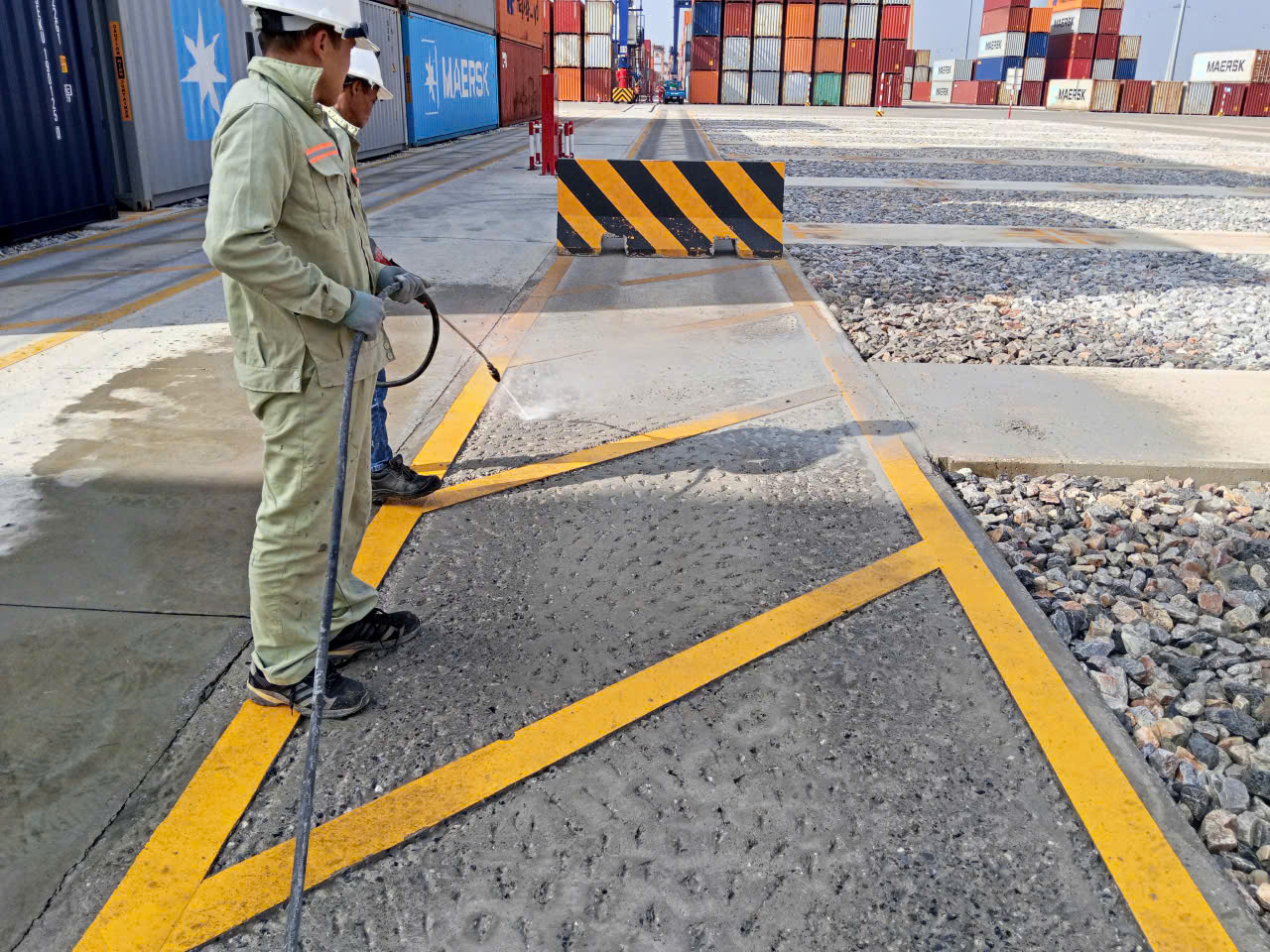 3. VỆ SINH SẠCH BỀ MẶT NỀN BẰNG MÁY PHUN NƯỚC ÁP LỰC CAO